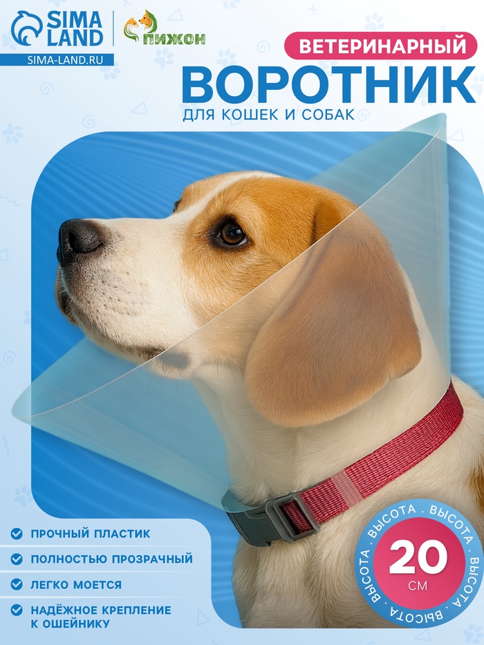 Ветеринарный воротник с креплением на ошейник, ОШ 14-34 см, высота 20 см, без ошейника 7 фото