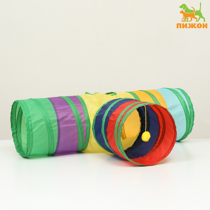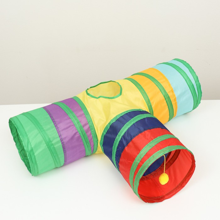 Туннель для кошек шуршащий «Тройник», 80×25 см, разноцветный 7 фото