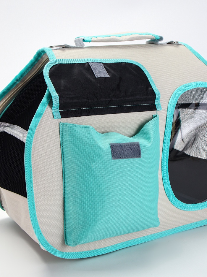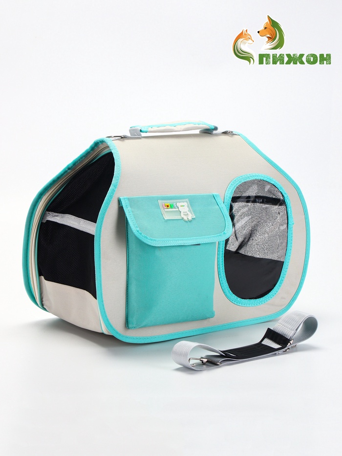 Сумка - переноска. 45×24×33 см с органайзером и окном, белая, мятная 10 фото
