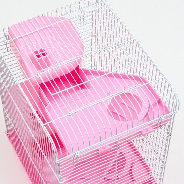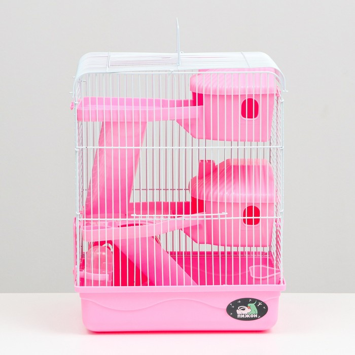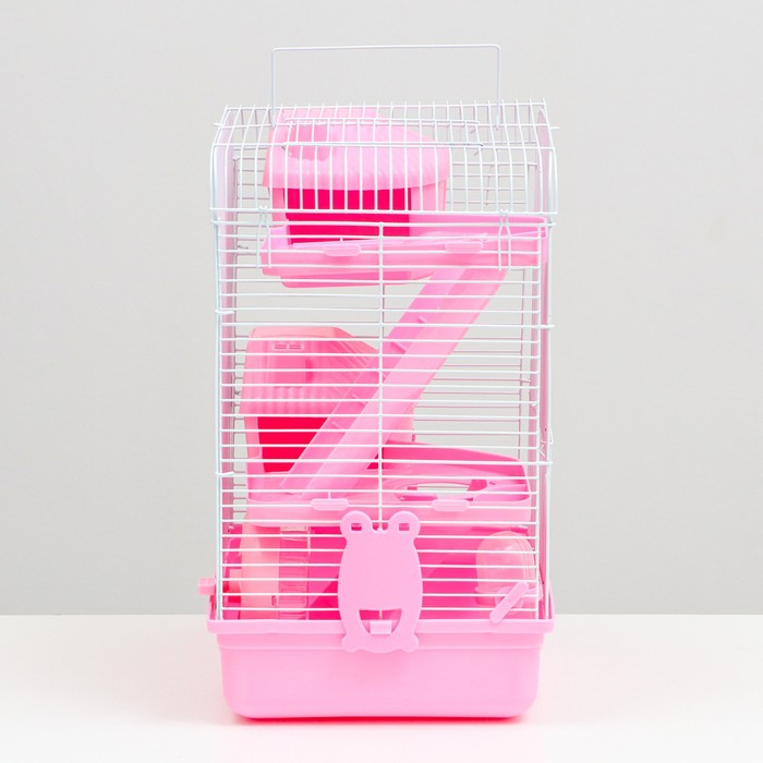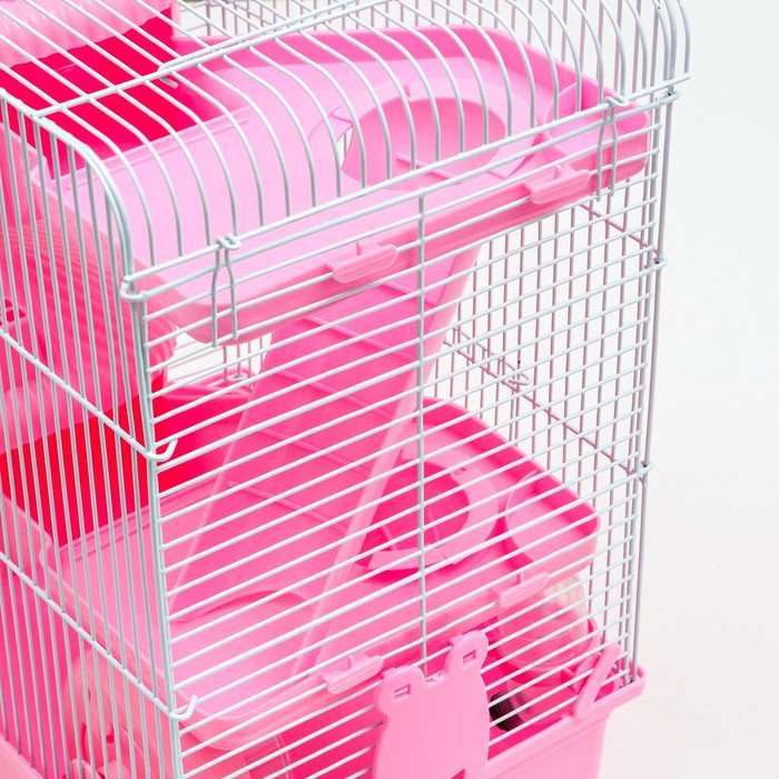 Клетка для грызунов "Пижон", трёхэтажная с наполнением 31 х 24 х 40 см, розовая 8 фото