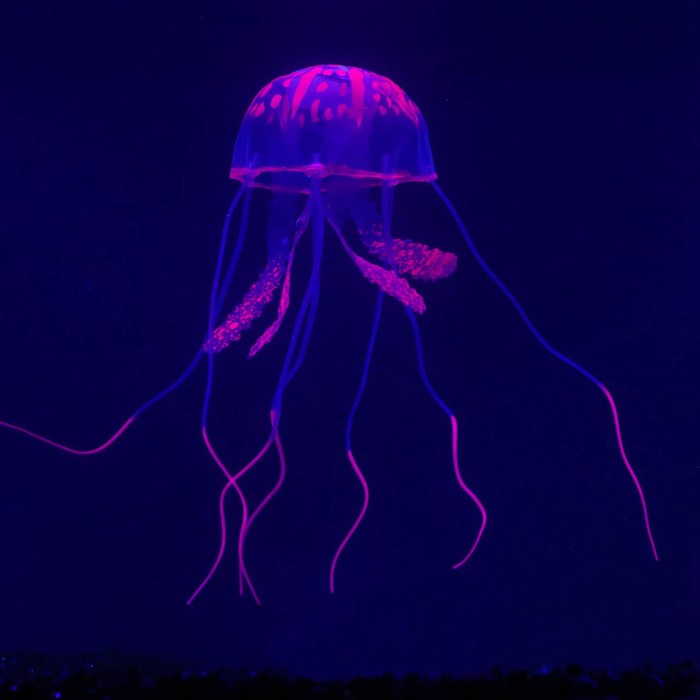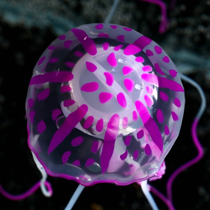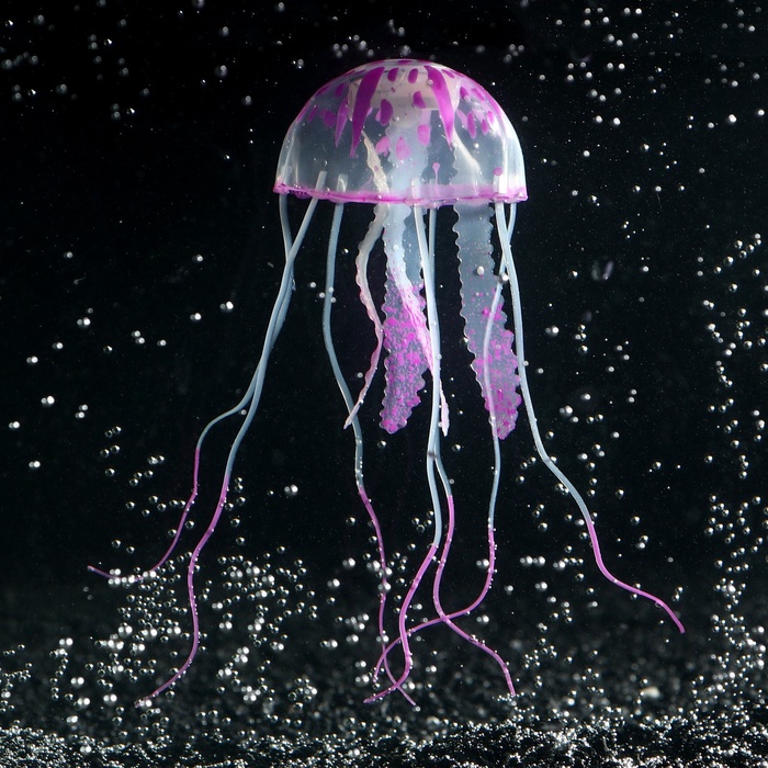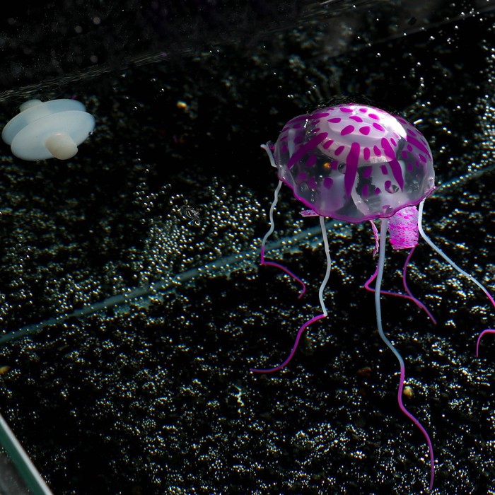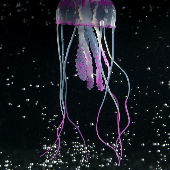 Декор для аквариума "Медуза" силиконовая, с неоновым эффектом, 5 х 5 х 15 см, фиолетовая 5 фото