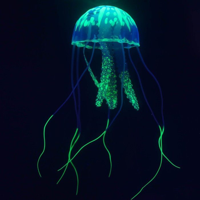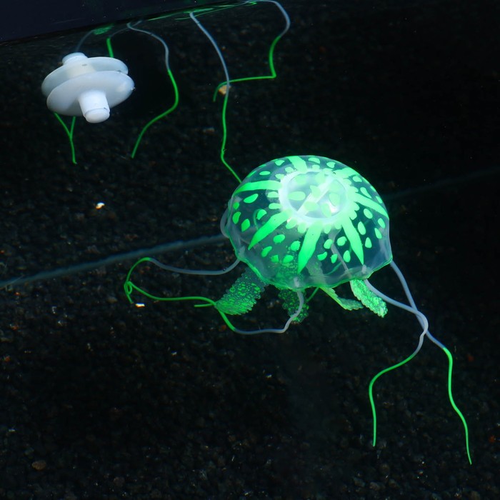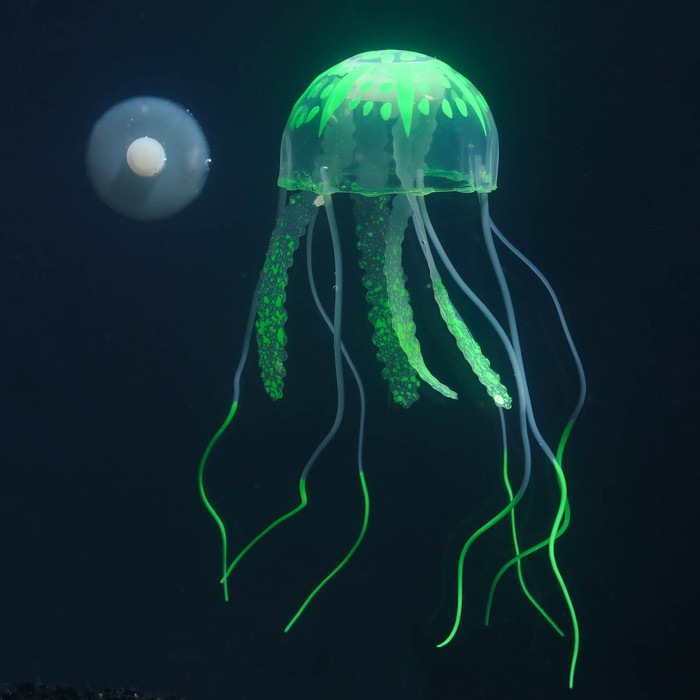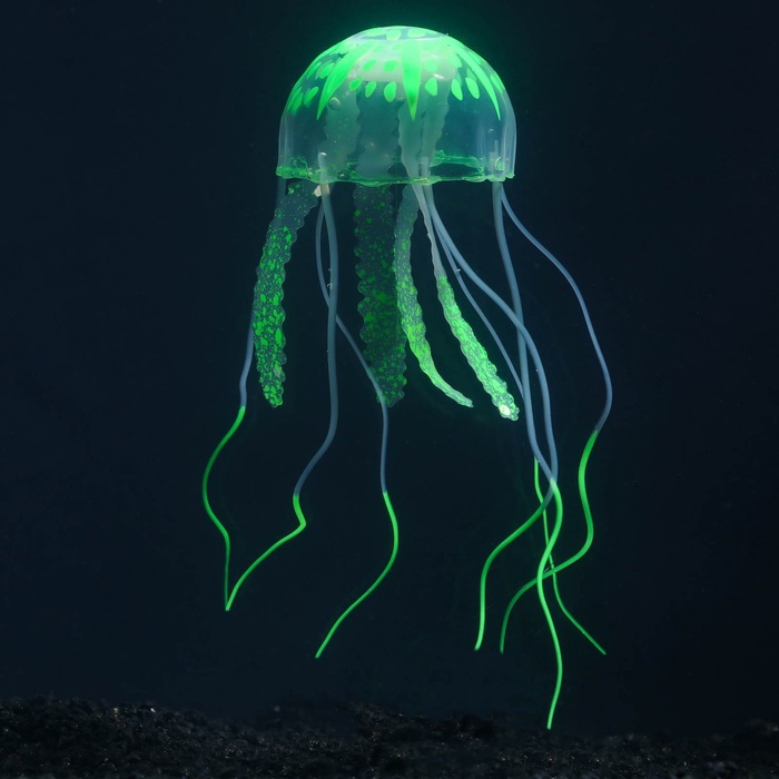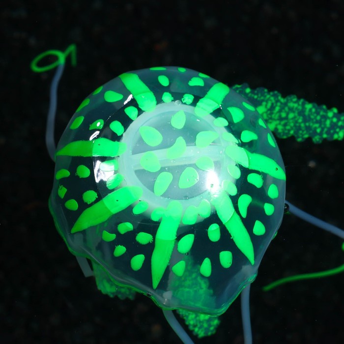 Декор для аквариума "Медуза" силиконовая, с неоновым эффектом, 5 х 5 х 15 см, зелёная 5 фото