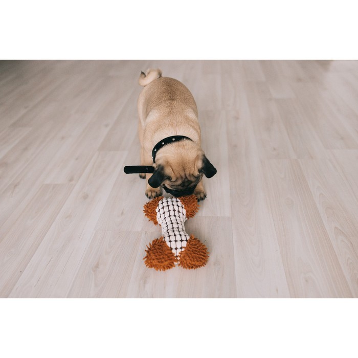 Игрушка мягкая для собак "Особая кость", двутканевая, с пищалкой, 20х12 см, бело-коричневая   708725 3 фото