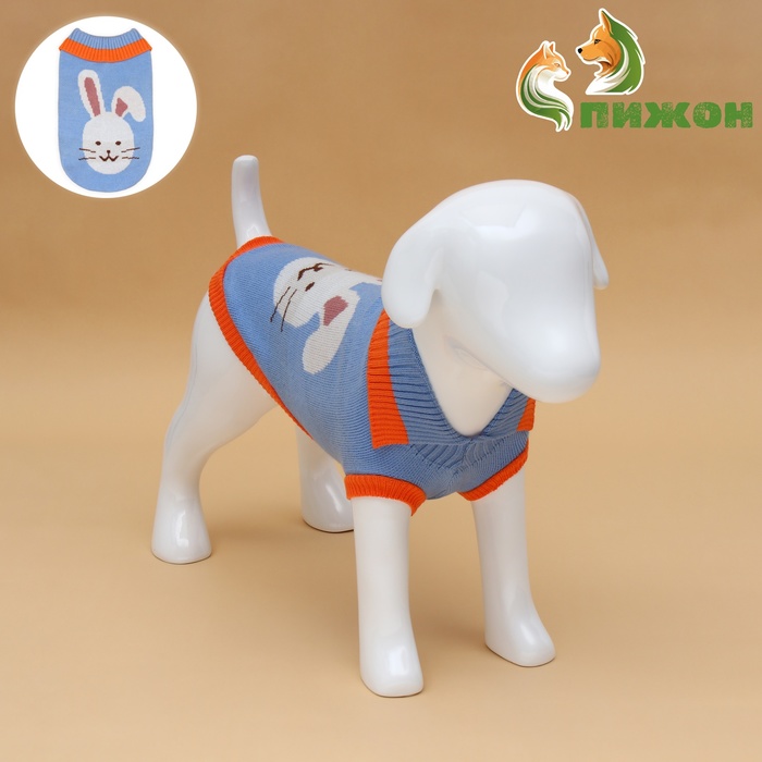 Свитер для животных «Зайка», размер M, ДС 26, ОШ 26, ОГ 28-46 см, голубой 9 фото