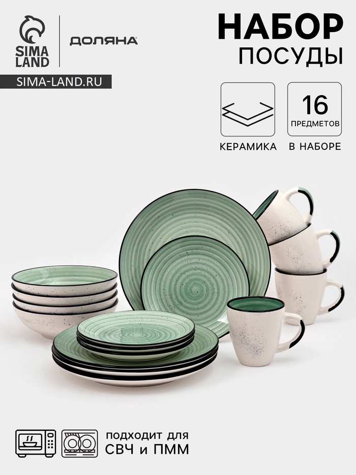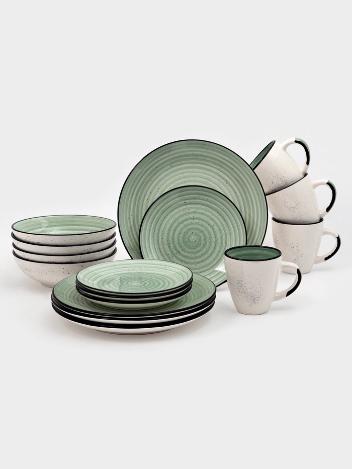 Набор посуды Доляна Nature Тар, 16 предметов: тарелки 8 шт. d=19 см, 27 см, глубокие 4 шт. 830 мл, кружки 4 шт. 400 мл, керамика, зелёный 10 фото