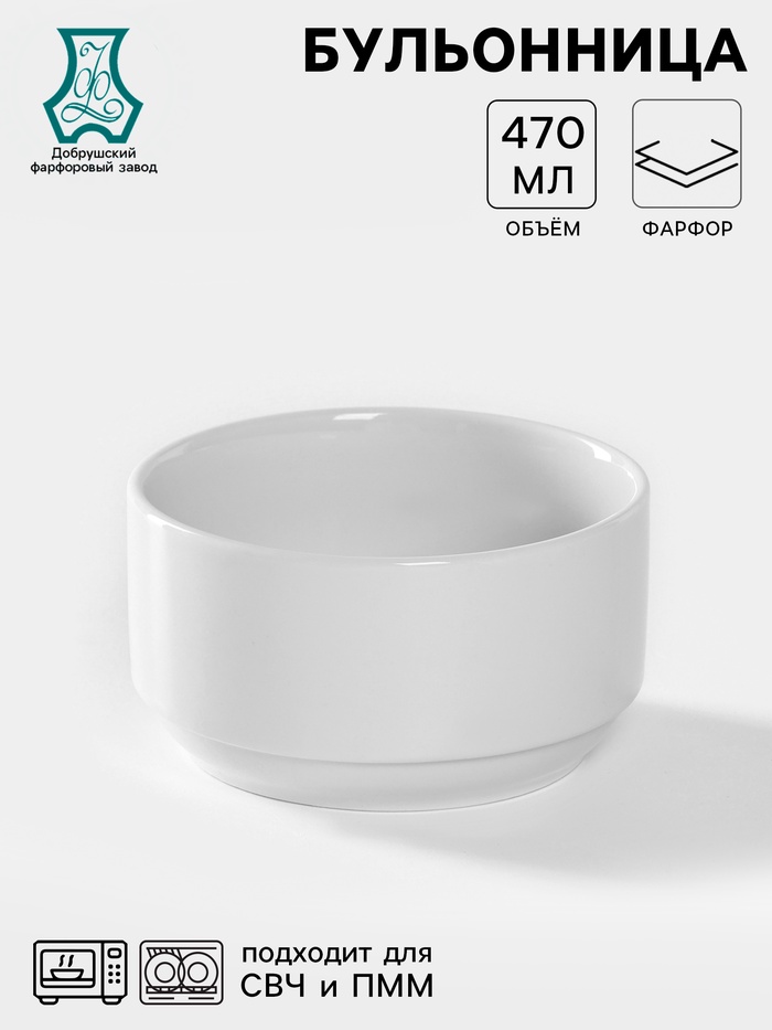 Бульонница Добрушский завод «Бельё», 470 мл, d=12 см, фарфор, белая 6 фото