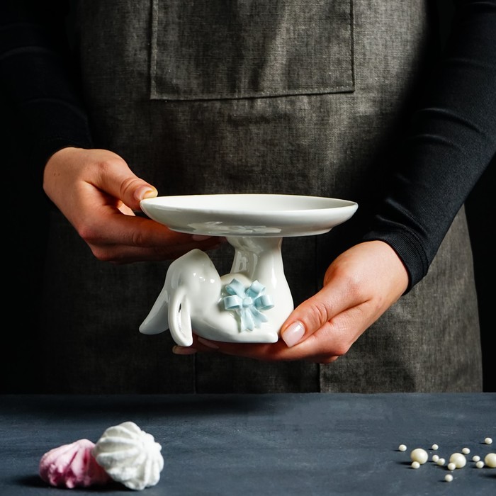 Блюдо керамическое с соусником «Ракушка», 28.5×15.5×2 см, белое 3 фото