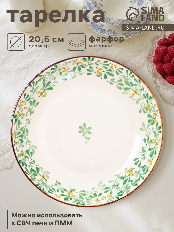 Тарелка «Гармония лепестков», d=20.5 см, фарфор, белая, зелёная 5 фото