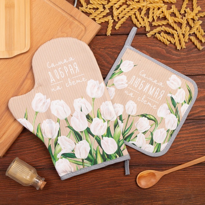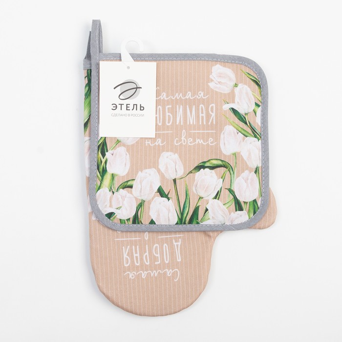 Набор кухонный «Самая любимая»: варежка-прихватка 20×28 см, прихватка 19×19 см,100% хл 6 фото