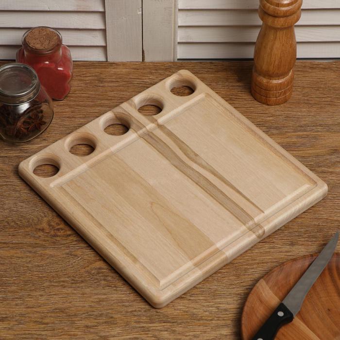 Доска разделочная и сервировочная Дарим Красиво «Функциональная №1», с желобом, дерево массив берёзы, 25×2 см 3 фото
