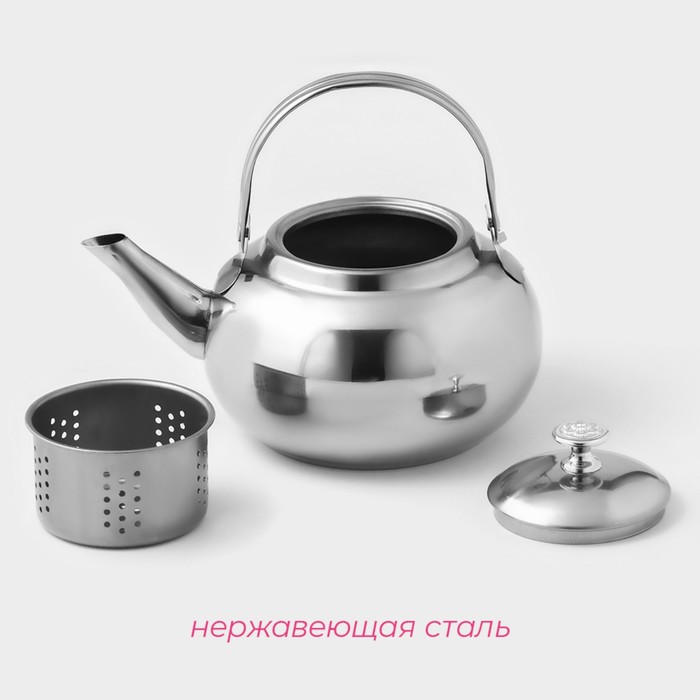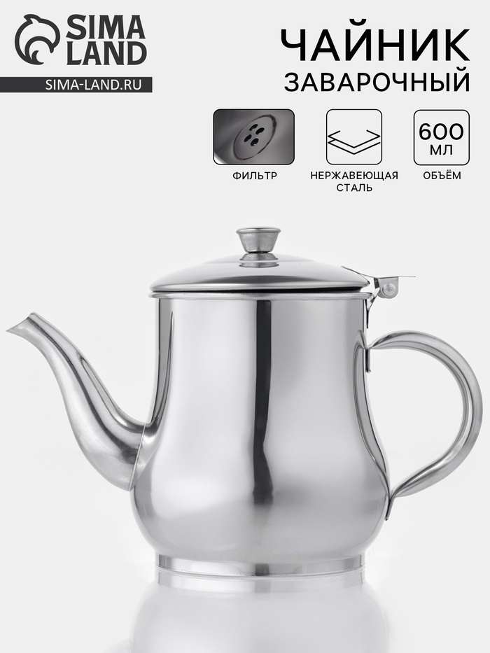 Заварочный чайник «Султан», 600 мл, 201 нержавеющая сталь, хромированный 7 фото