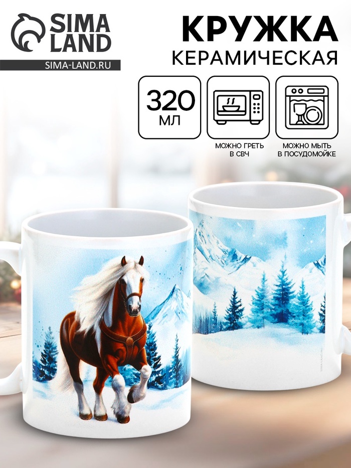 Кружка новогодняя керамическая «Вершины гор», лошадь, 320 мл 7 фото