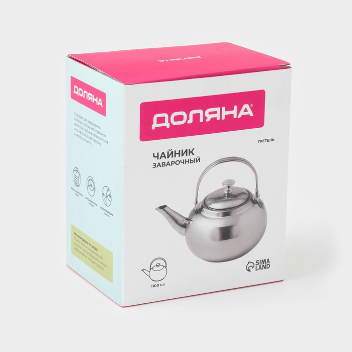 Заварочный чайник Доляна «Гретель», 1.1 л, металлическое сито, нержавеющая сталь, хромированный 9 фото