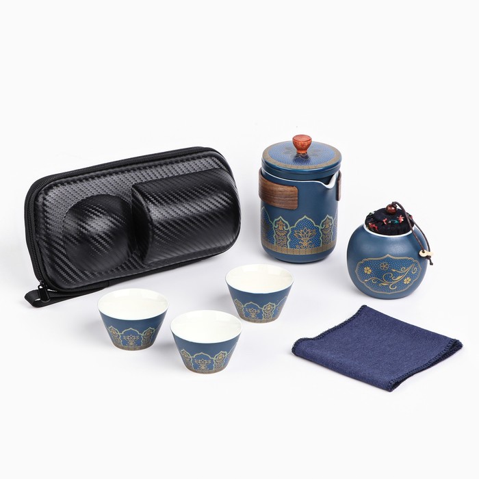 Набор для чайной церемонии ДЖЕКИЧАЙ, 6 предметов, на 3 персоны, чашка 46 мл, чайник 250 мл, синий 8 фото