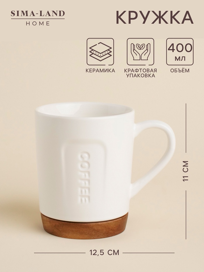 Кружка Доляна Coffee break, 280 мл, керамика, белая 6 фото