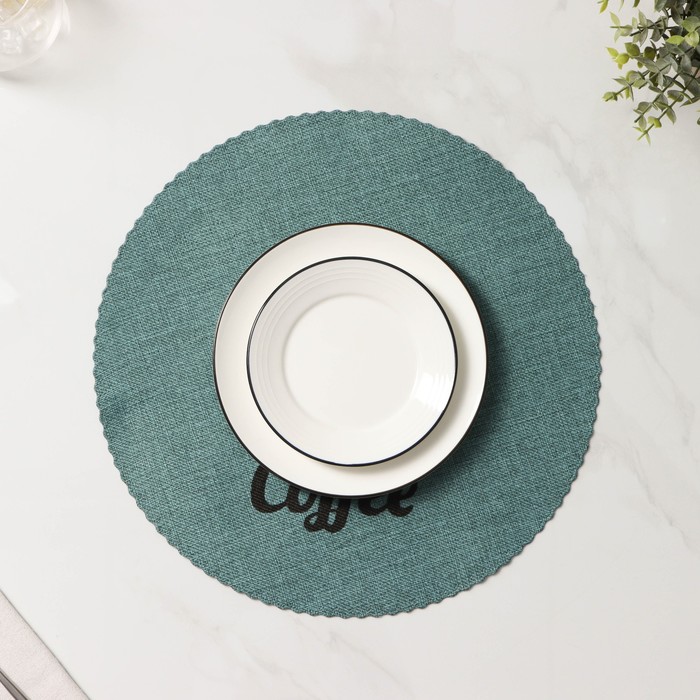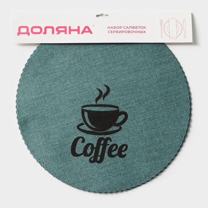 Салфетки сервировочные на стол Доляна Coffee, 4 шт., d=37 см, бирюзовые 8 фото