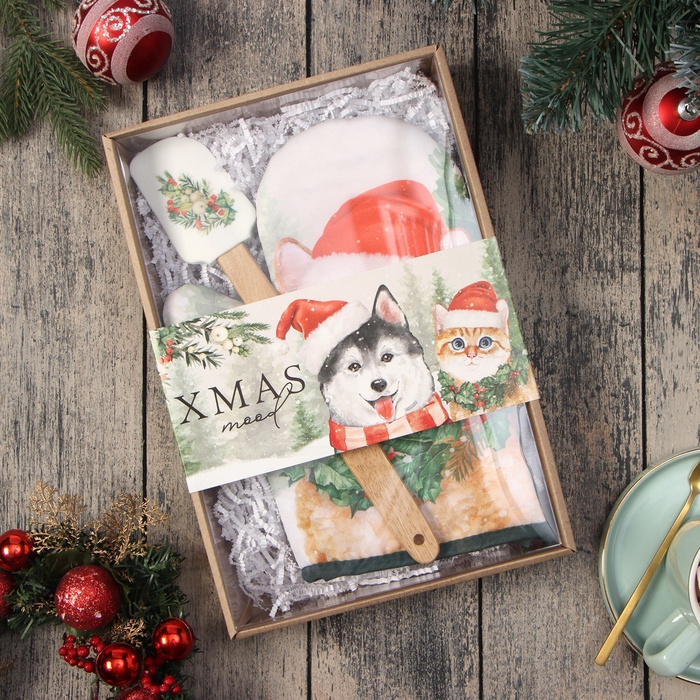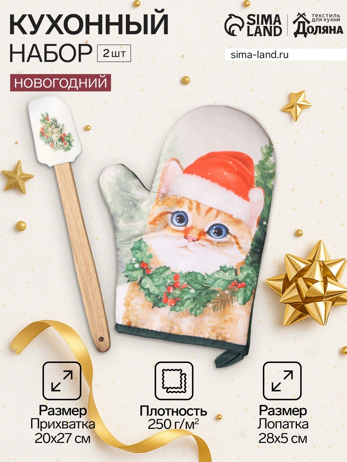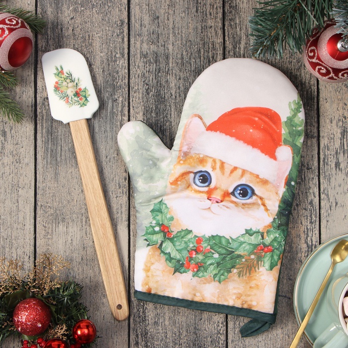 Набор новогодний подарочный «Доляна. Кошечка»: варежка-прихватка, лопатка силикон 8 фото