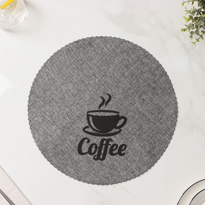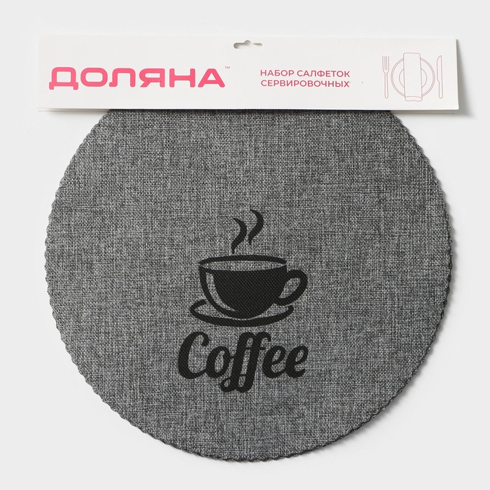 Салфетки сервировочные на стол Доляна Coffee, 4 шт., d=37 см, серые 8 фото