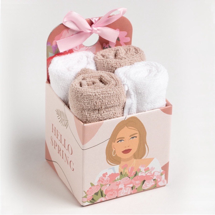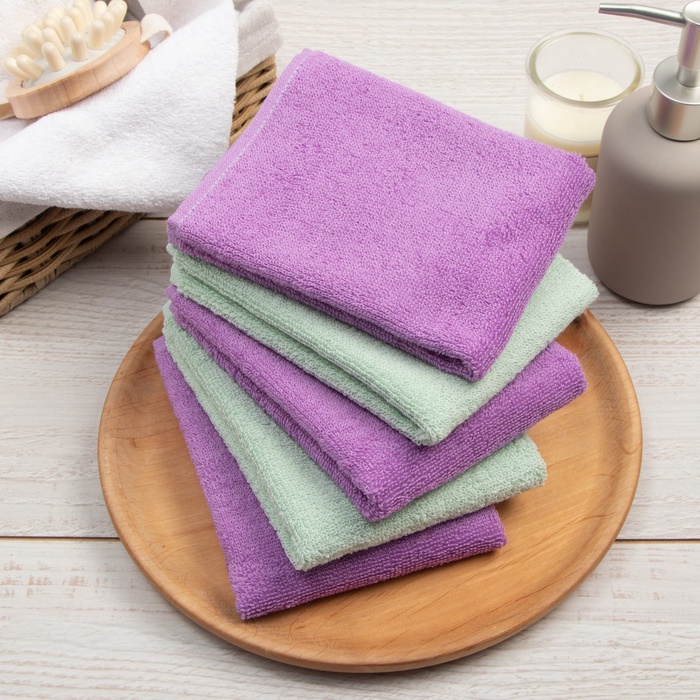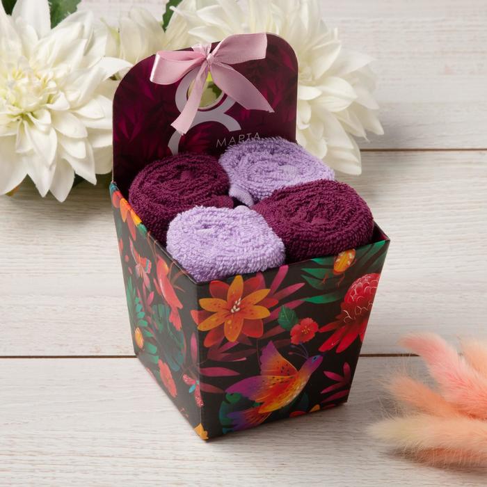 Салфетки махровые декоративные «Этель. 8 Марта», 4 шт., 30×30 см, 100% хлопок, бордовые/сиреневые 6 фото