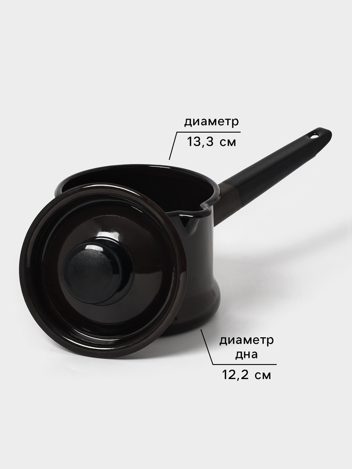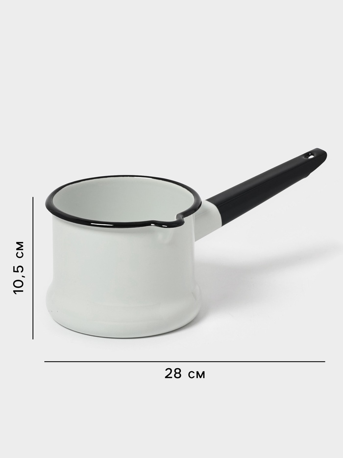 Ковш эмалированный, 1 л, без декора, белый 10 фото