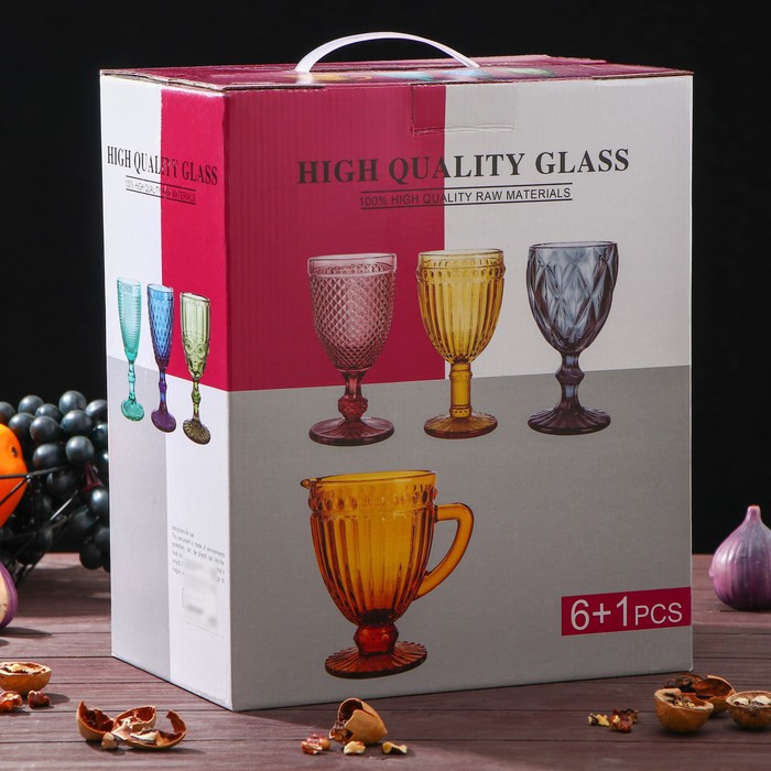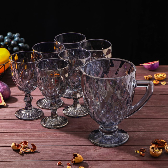 Набор для напитков из стекла «Круиз», 7 предметов: кувшин 1.1 л, 6 бокалов 300 мл, цвет серый 8 фото