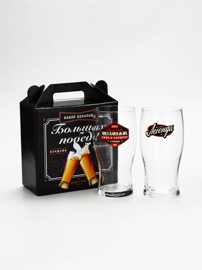 Подарочный набор пивных бокалов «Мегамужик», 2 шт. 3 фото
