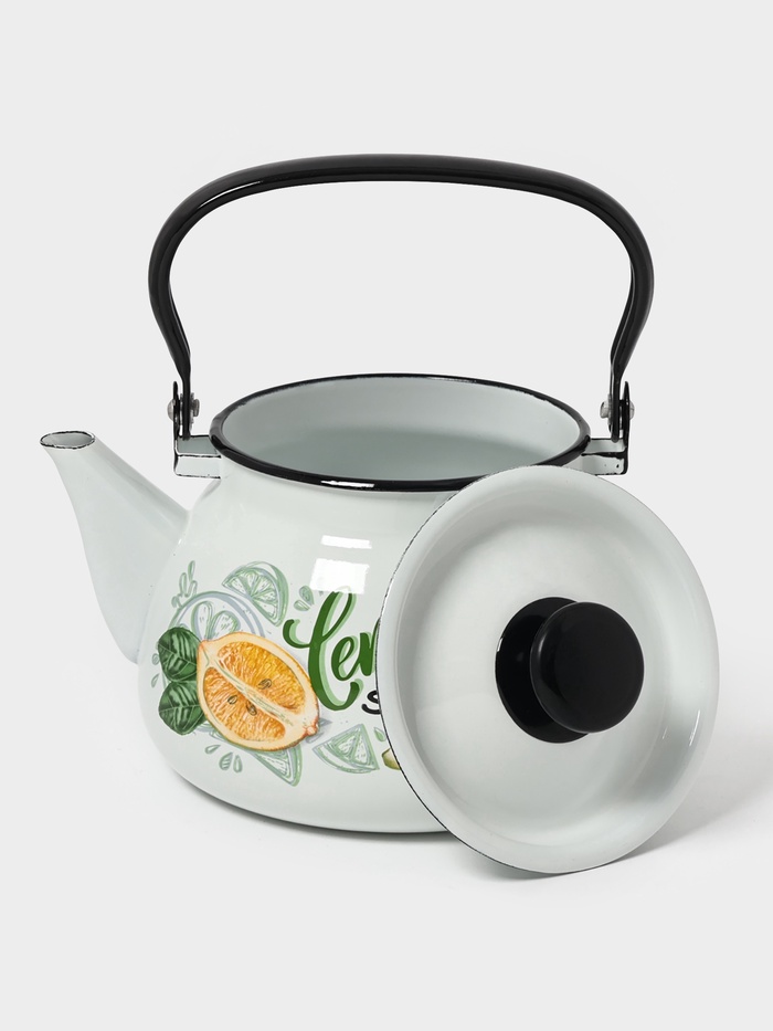 Чайник эмалированный «Магнолия», 3 л, металлическая ручка, слоновой кости 9 фото