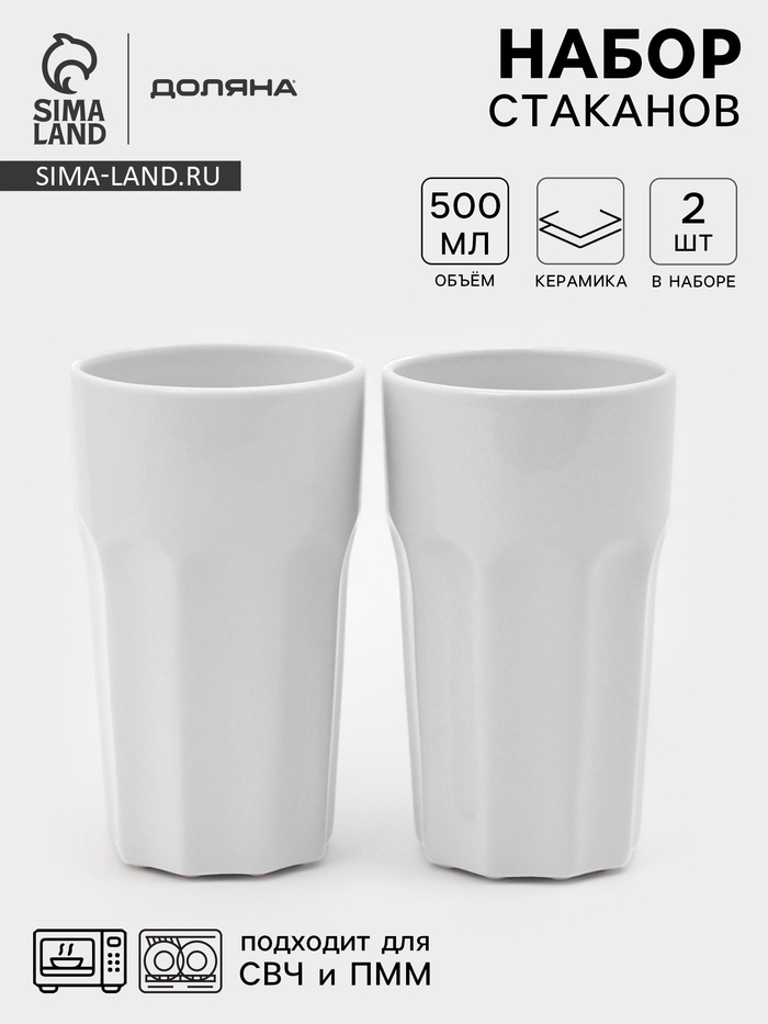 Стаканы Доляна «Классика», набор 2 шт., 500 мл, керамика, белые 5 фото