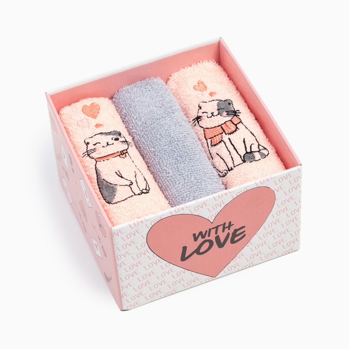 Салфетки махровые «Этель. Котики» 30×30 см - 3 шт., хлопок 100% 9 фото