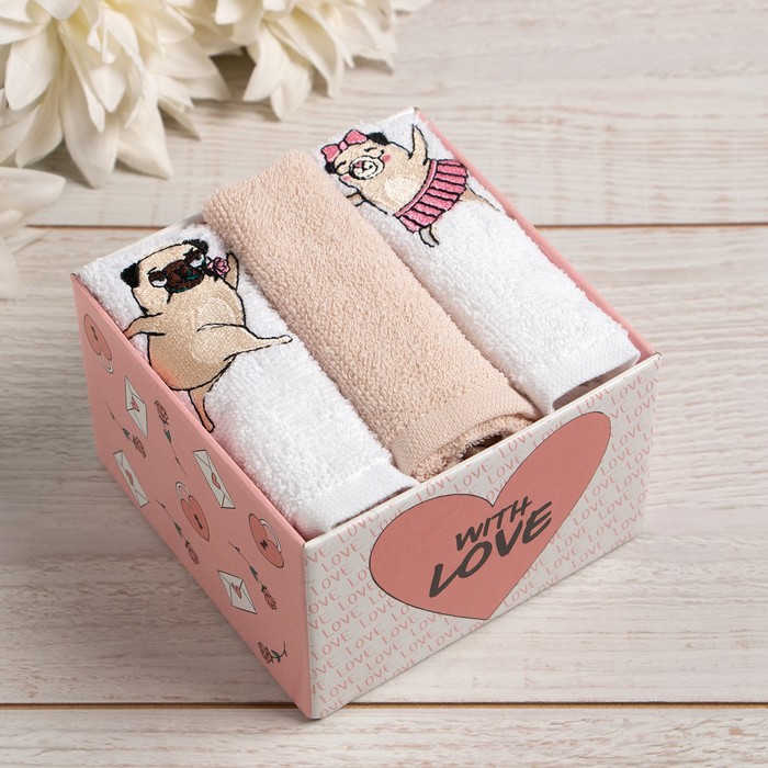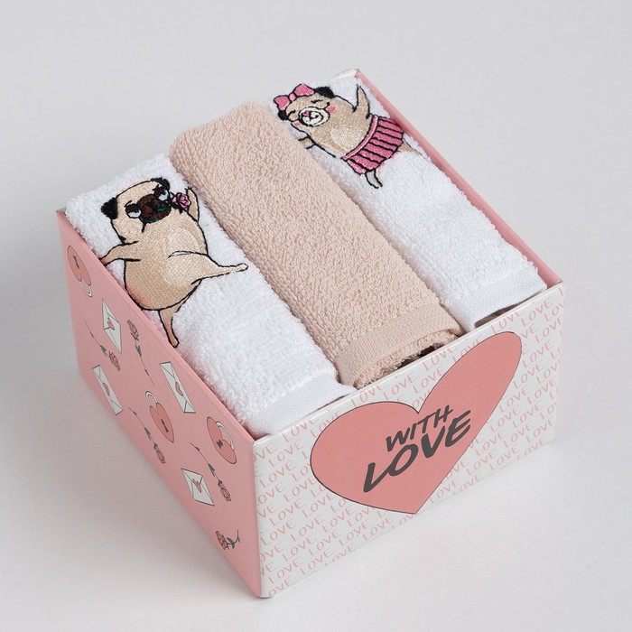 Набор полотенец «Мопсики» 30×30 см-3 шт., 100% хлопок 340 г/м² 8 фото