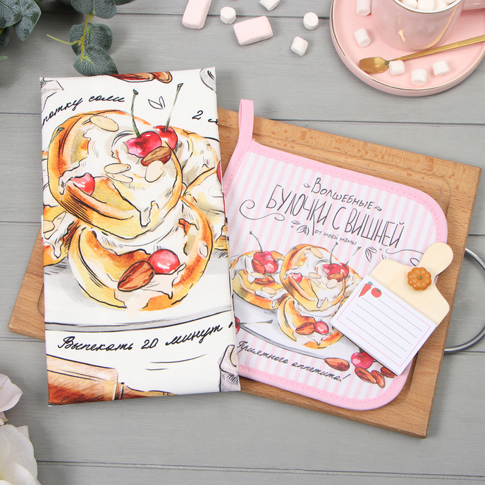 Набор подарочный «Булочки»: полотенце 40×73 см, прихватка 19×19 см, магнит 11×7 см 9 фото