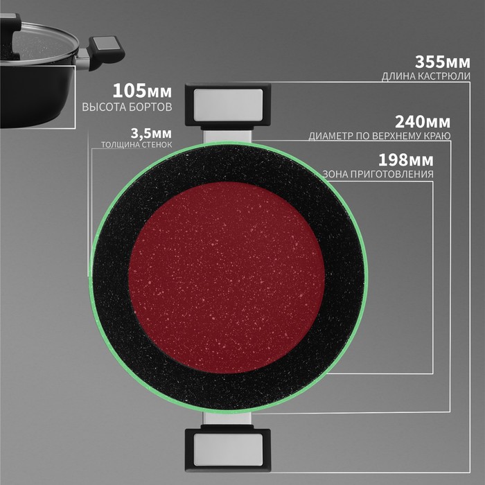 Кастрюля Magistro Warrior, 4 л, d=24 см, h=10.5 см, с крышкой, антипригарное покрытие, индукция, алюминий, чёрная 10 фото