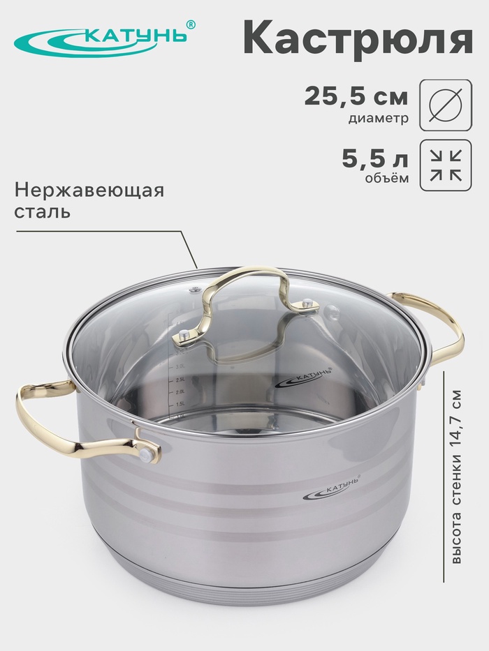 Кастрюля Magistro Grande, 5.5 л, с крышкой, капсульное дно, индукция, нержавеющая сталь 8 фото