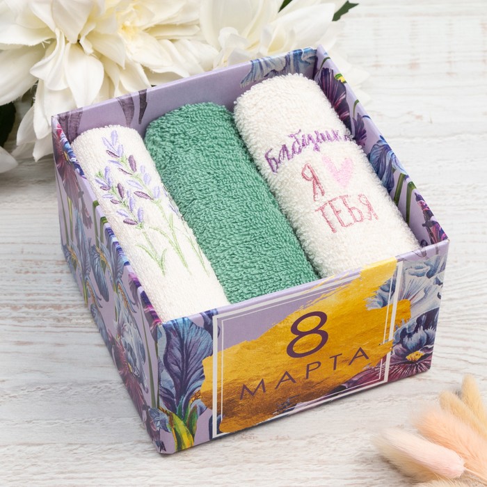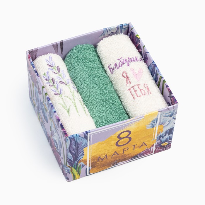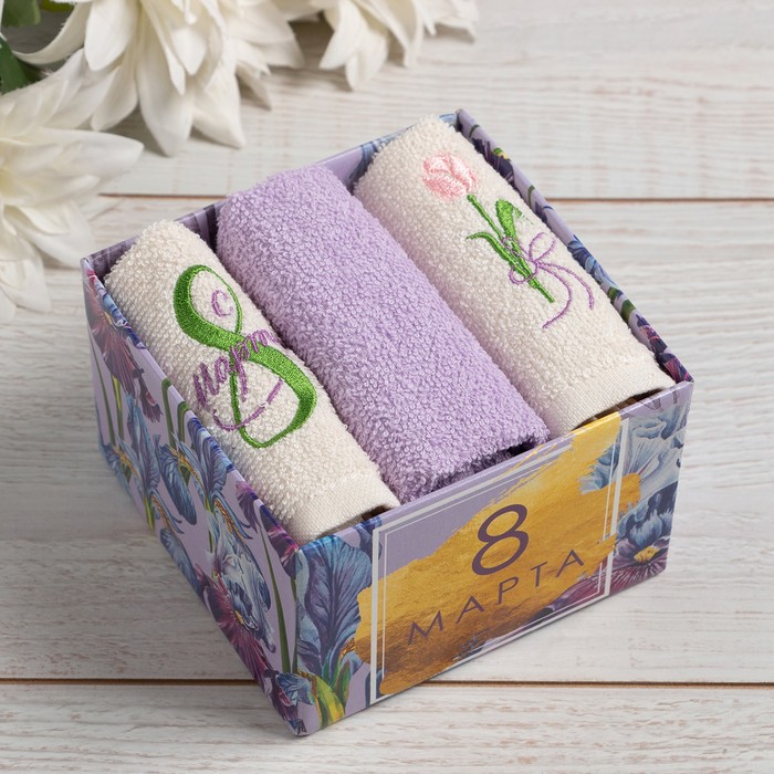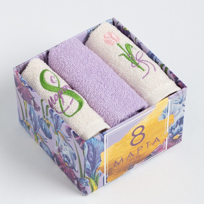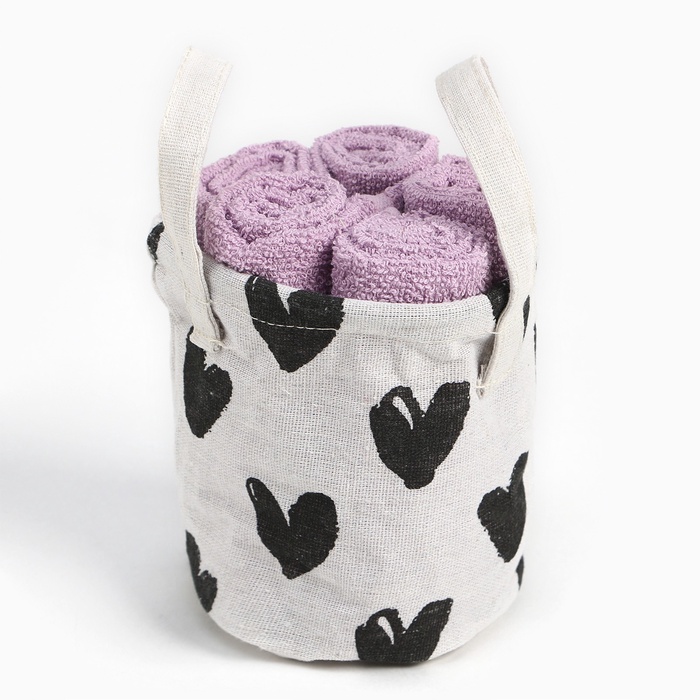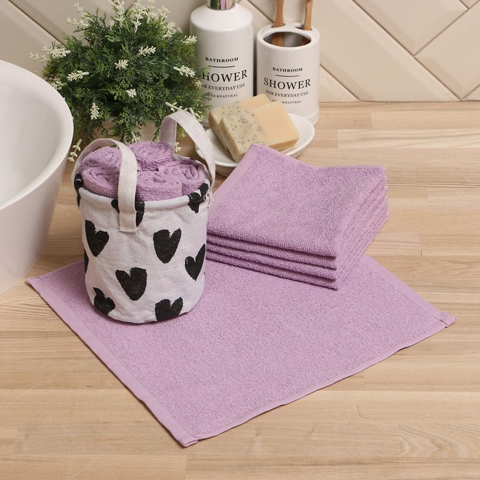 Салфетки махровые декоративные «Этель. Сердечки», 5 шт., 30×30 см, хлопок 100%, сиреневые 7 фото
