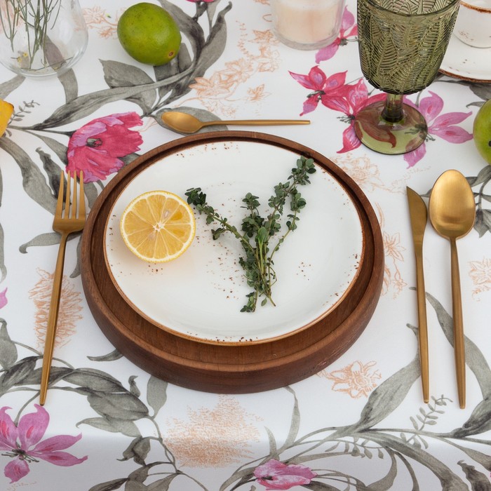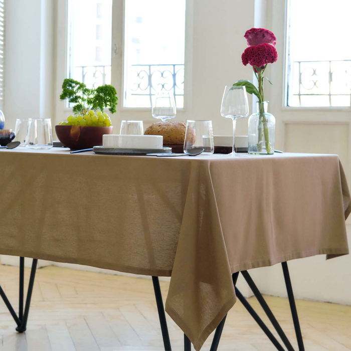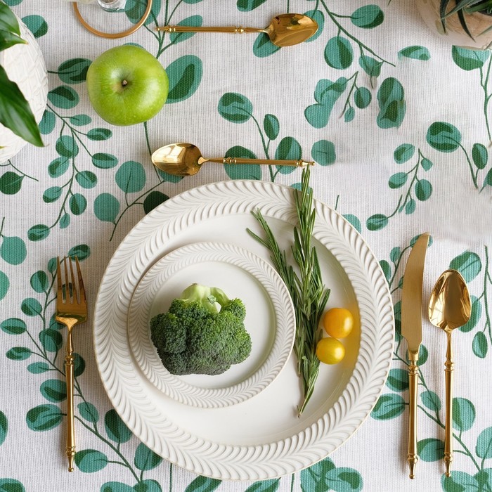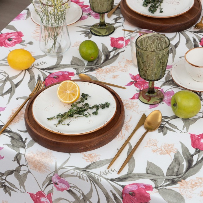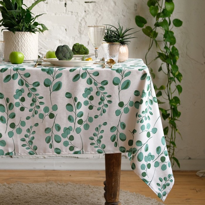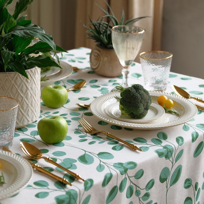 Скатерть Этель ECO, цвет оливковый, 110×136/±6 см, 70% хл, 30% лён, 190 г/м² 9 фото