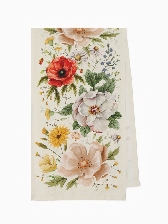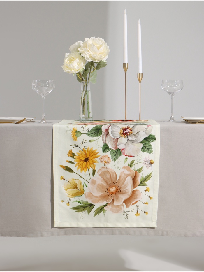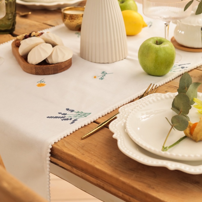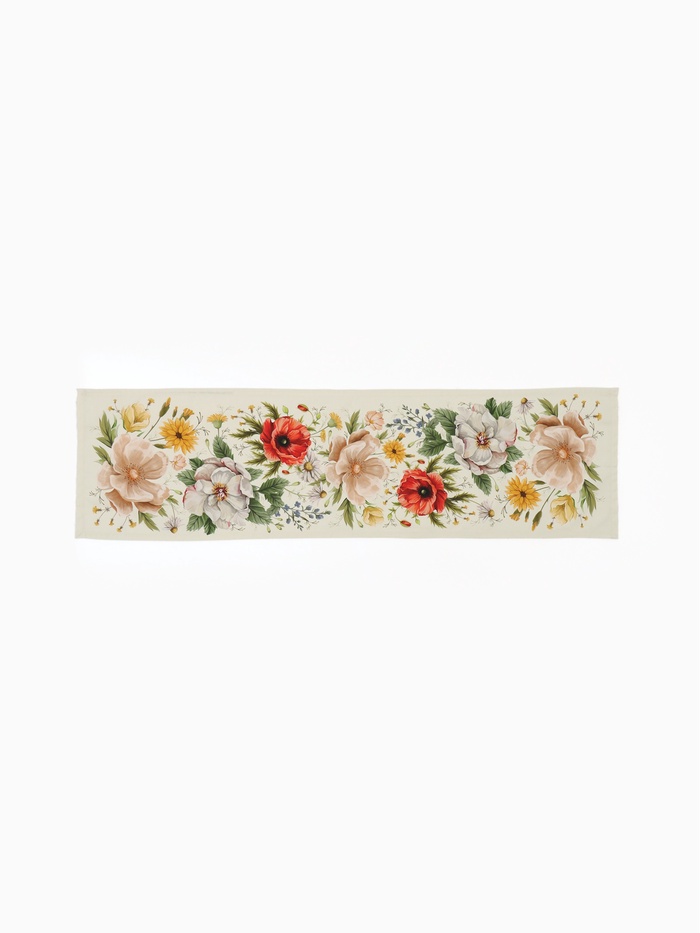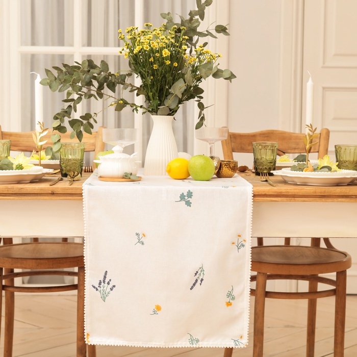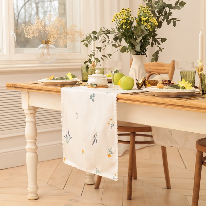 Дорожка на стол Этель «Полевые цветочки» 40×146 см, рогожка 176 г/м², 100% хлопок, белая 10 фото