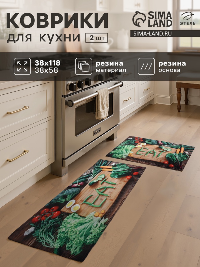 Набор ковриков для кухни Этель «EAT», 2 шт., 38×58 см, 38×118 см 7 фото