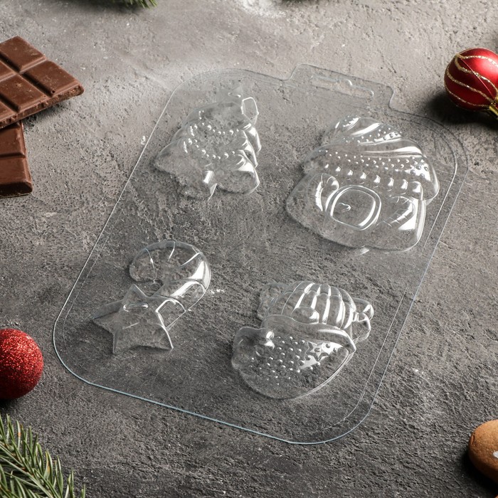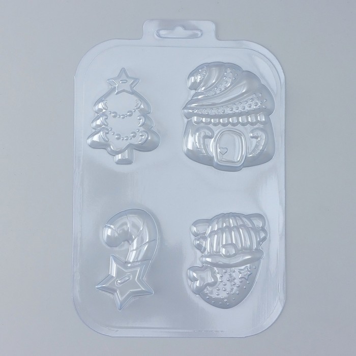Форма для шоколада и конфет новогодняя «Домики Гномики», 4 ячейки 8.5×5 см, пластик, прозрачная 4 фото