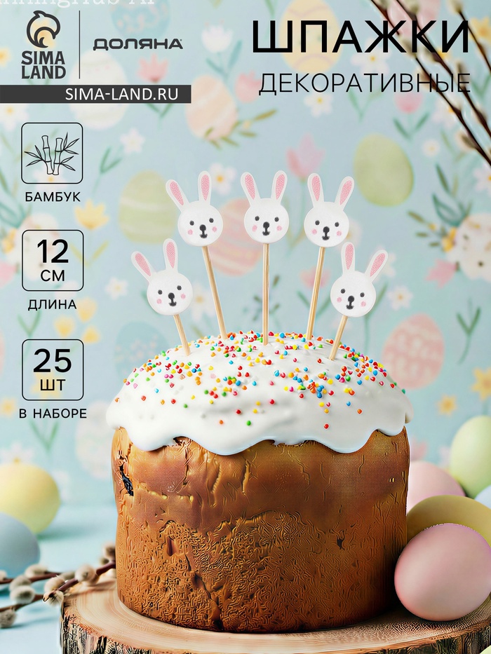 Шпажки Доляна «Пасхальные зайчики», h=12 см, набор 25 шт. 10 фото
