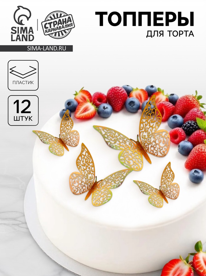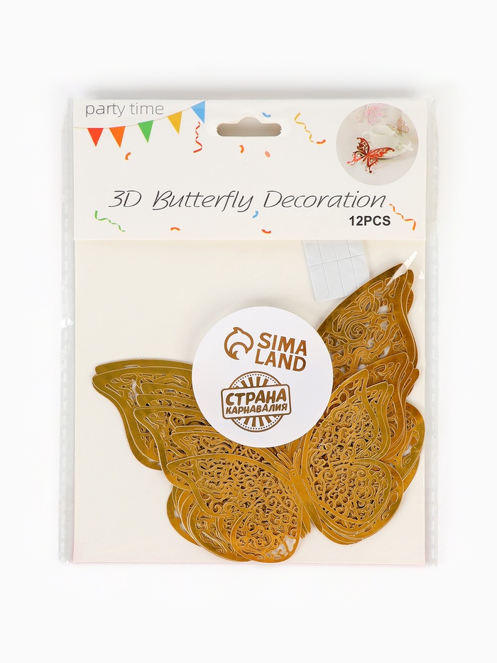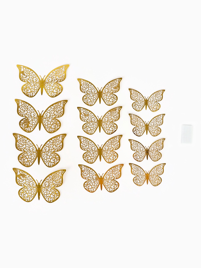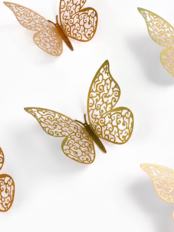 Топпер для торта «Бабочки», 12 штук, голография, золотой 9 фото