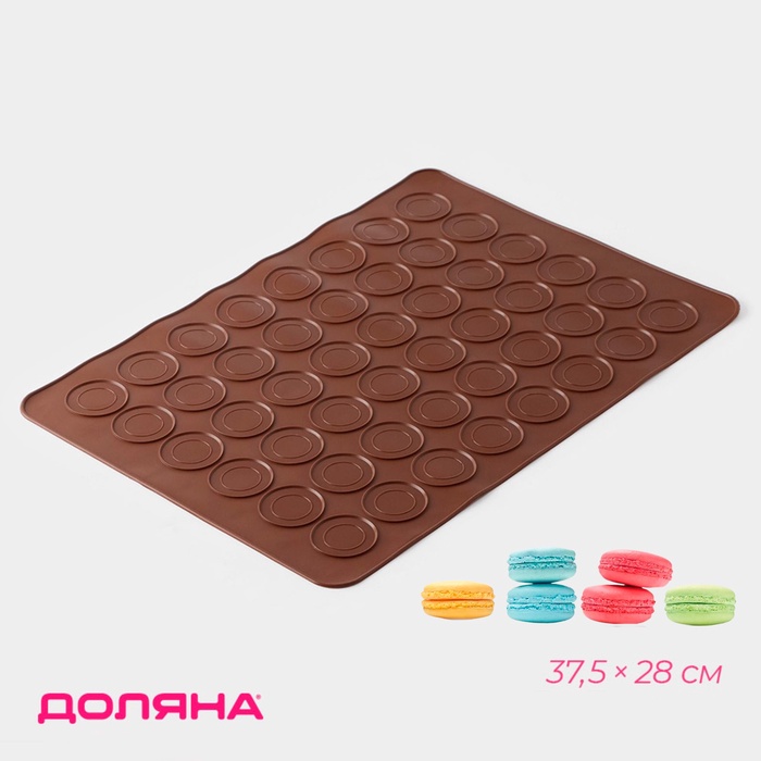Коврик для выпечки макарун Доляна «Ронд», силикон, 37.5×28 см, коричневый 8 фото