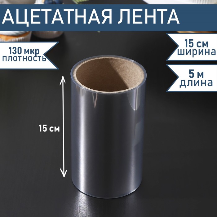 Лента ацетатная для обтяжки тортов Доляна, 40 мкр, 60 мм×15 м, прозрачная 7 фото