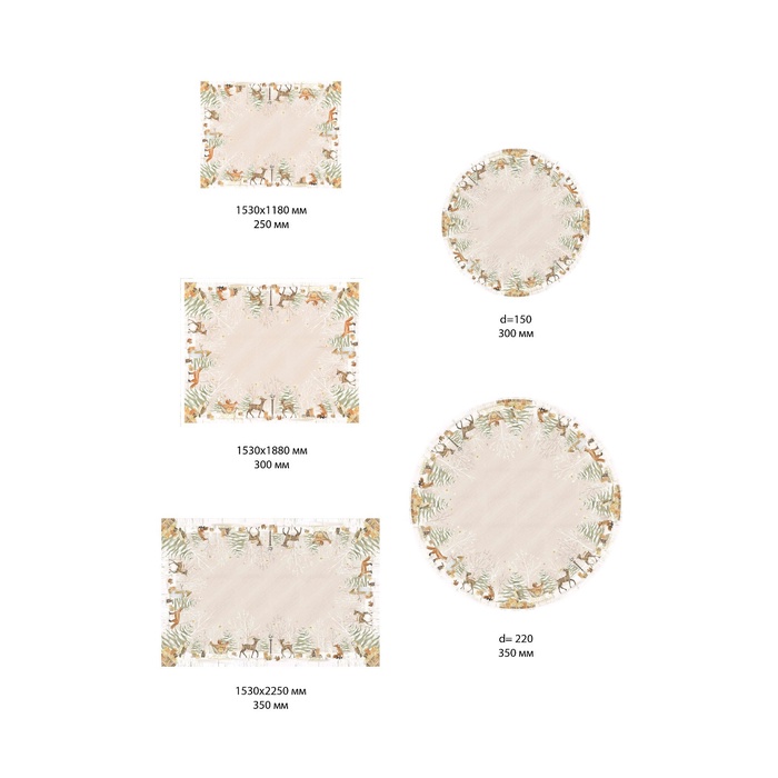 Размер : 185*150 см, 8 салфеток, 220 см, 220*150 см, 12 салфеток