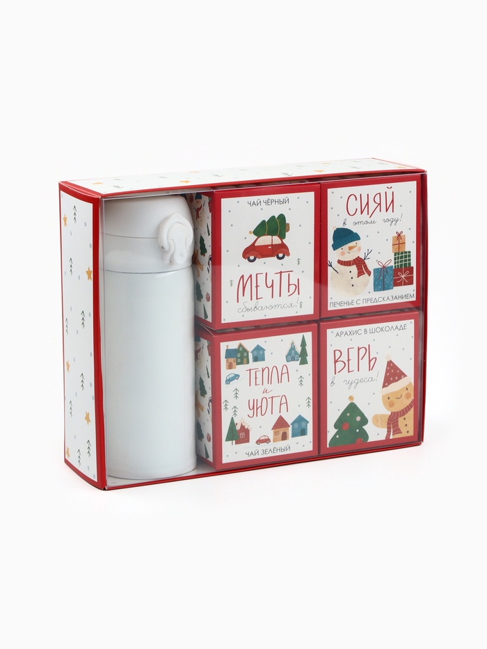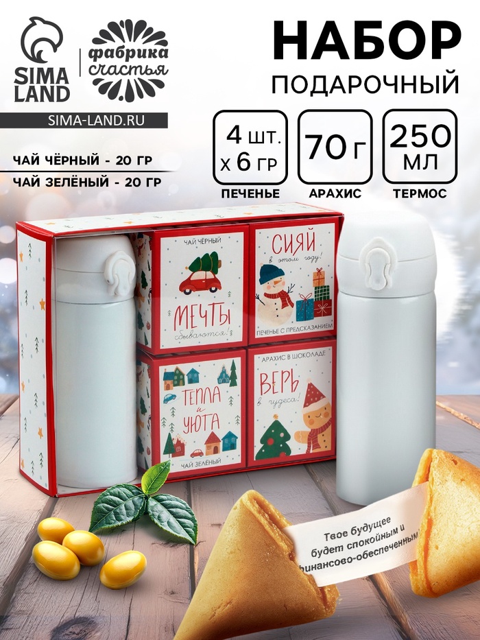 Подарочный набор новогодний «Волшебного года»: термос, чай чёрный/зелёный, печенье с предсказанием, арахис в шоколадной глазури 5 фото