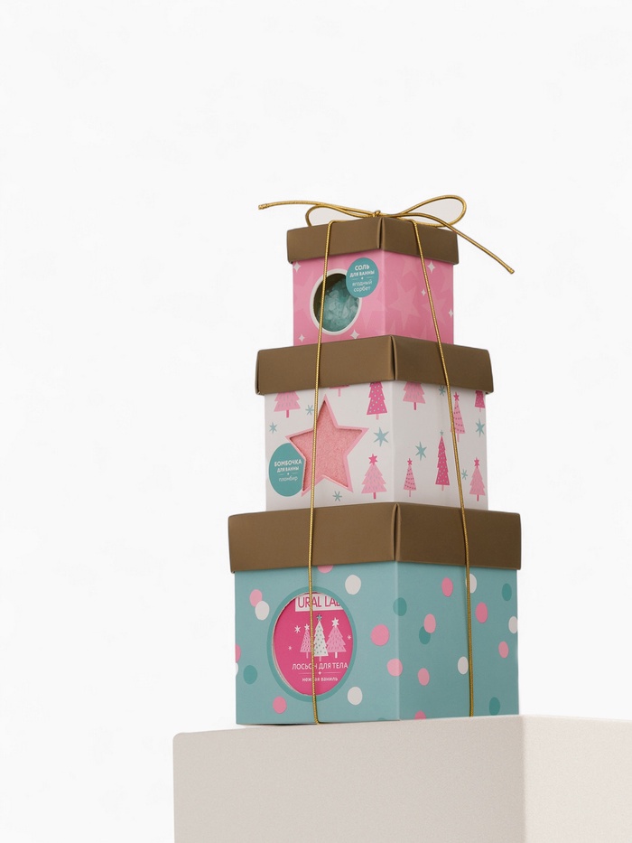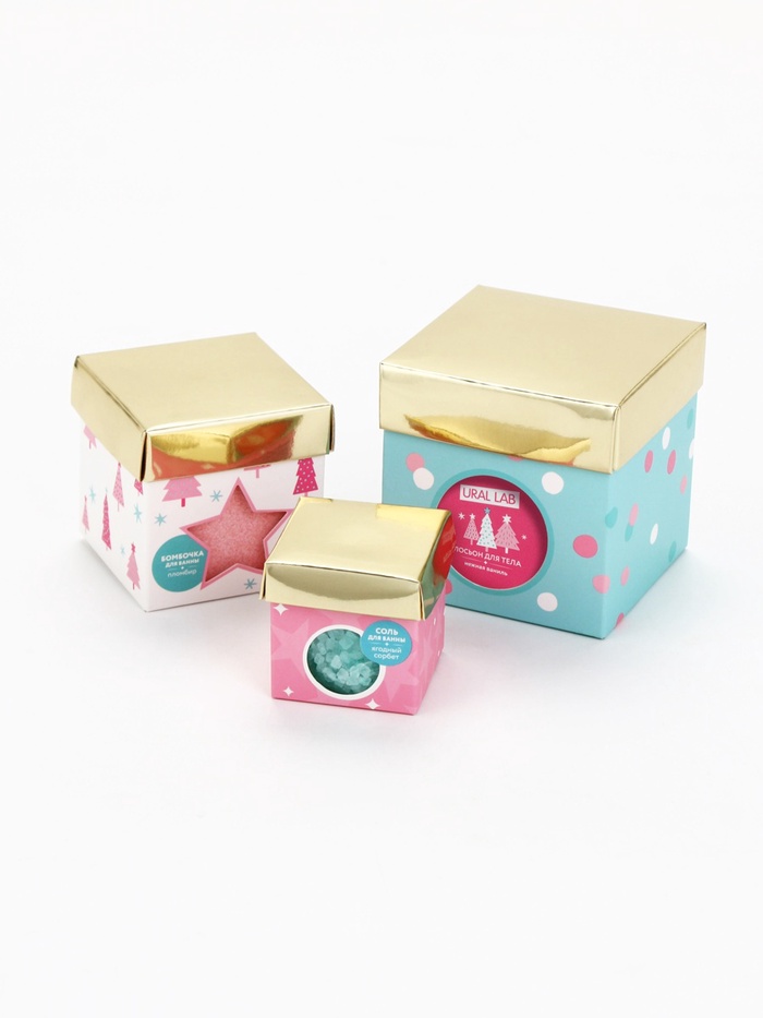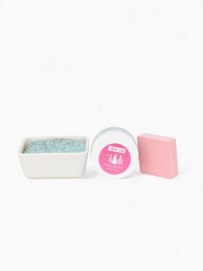 Подарочный набор новогодний, лосьон для тела, соль и бомбочка для ванны, URAL LAB 10 фото