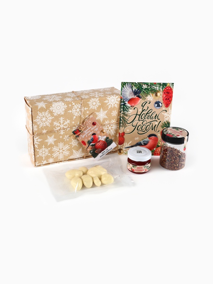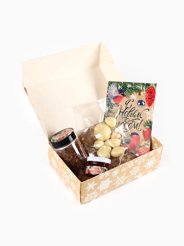 Подарочный набор новогодний «С Новым годом», джем 30 г, чай 20 г, орехи 50 г 10 фото