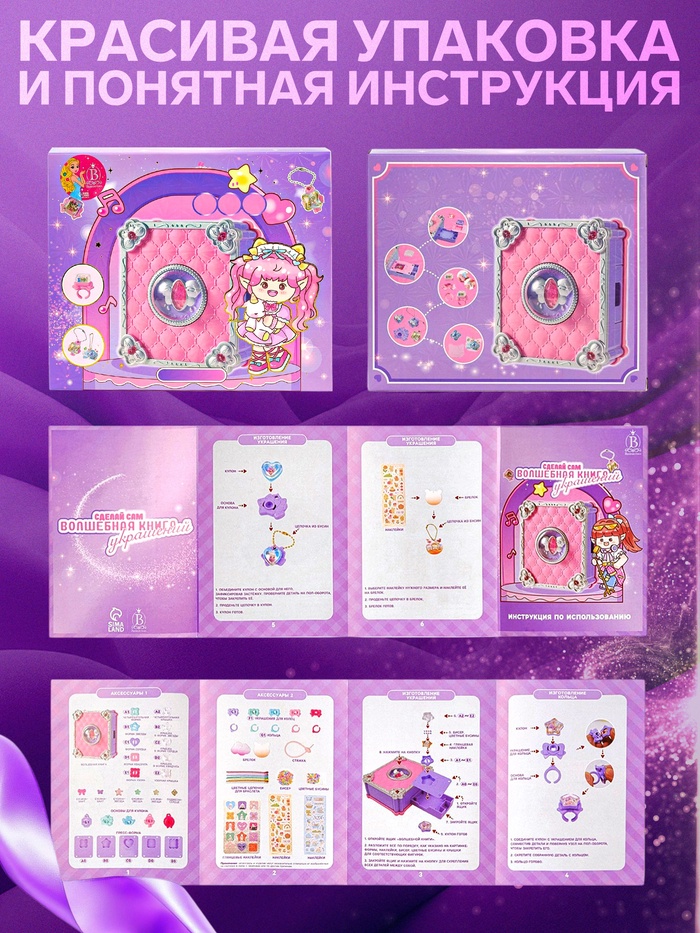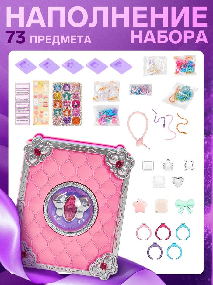 Набор для создания украшений детский Выбражулька «Волшебная книга», 73 в 1, кольца, брелоки 10 фото