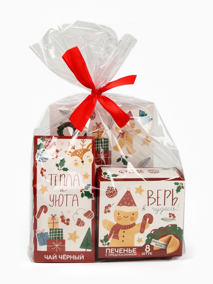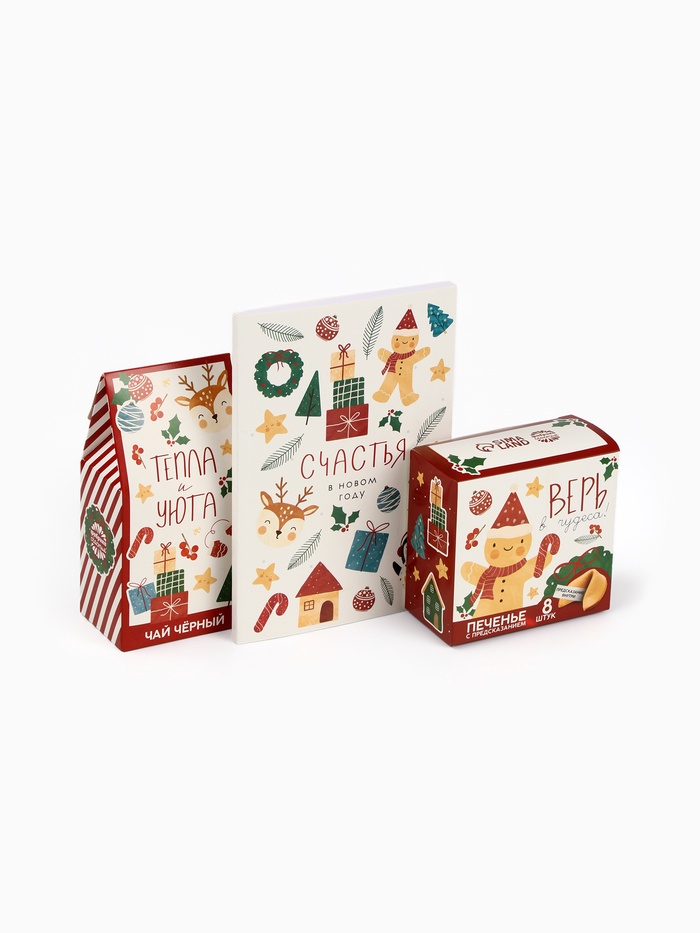 Подарочный набор новогодний «Тепла и уюта», чай 50 г, печенье с предсказанием 8 шт., ежедневник 10 фото