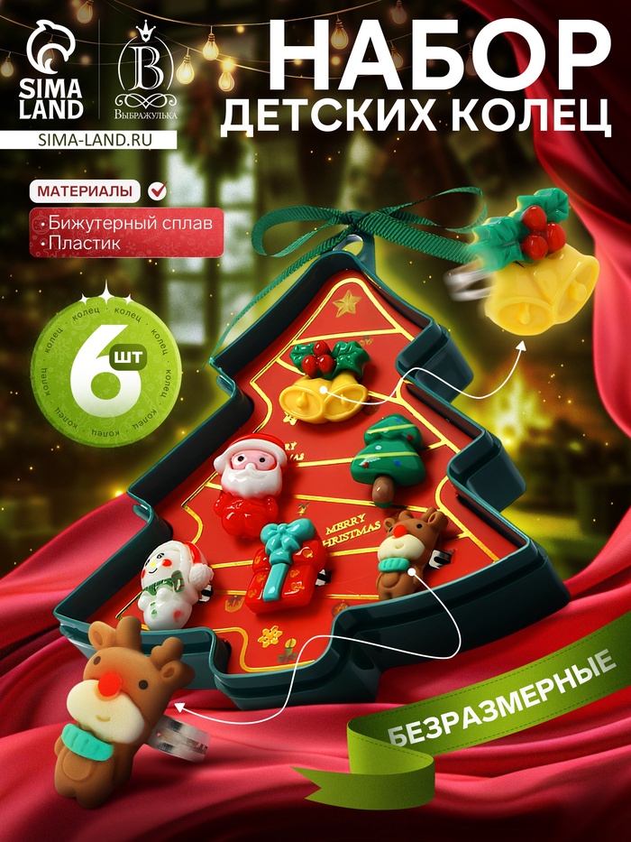 Кольца детские Выбражулька «Ёлка», 6 шт. разноцветные, безразмерные 8 фото