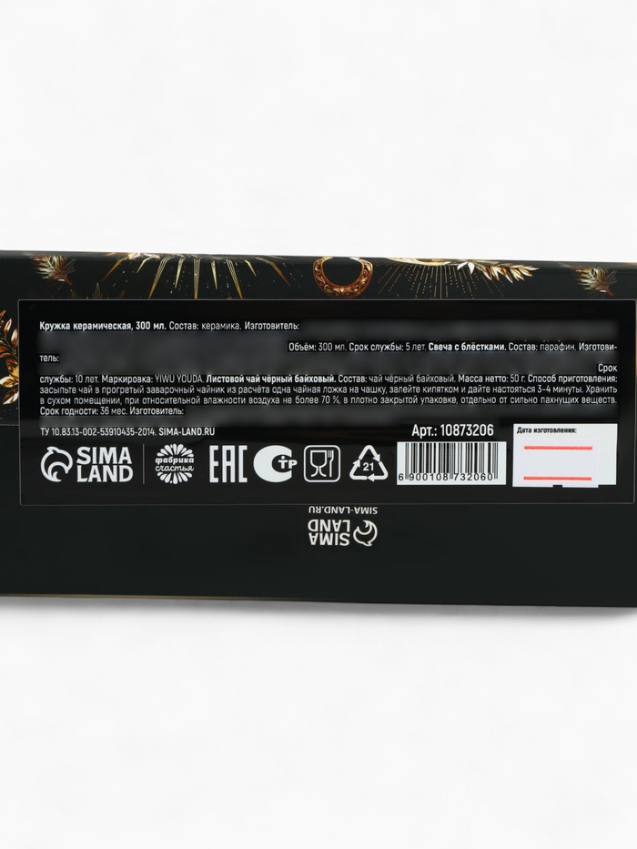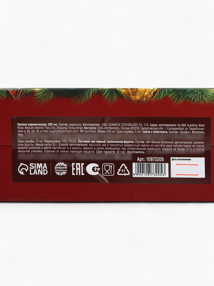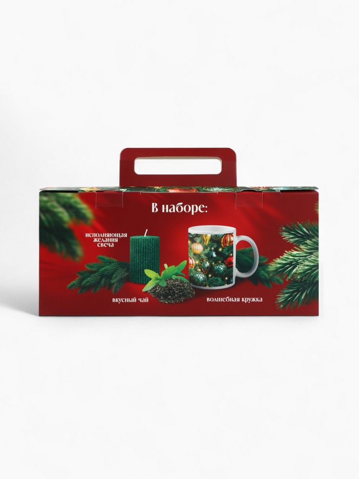 Подарочный новогодний набор «Счастья и удачи»: чай 50 г, кружка 300 мл., свеча 9 фото